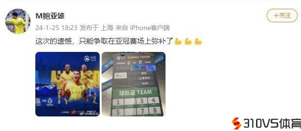 鲍亚雄是C罗球迷,此前在官宣申花将和利雅得成功交手时,他在社媒上按捺不住自己的激动,转发自己称赞C罗的社媒并写道:“真的是他吗?”