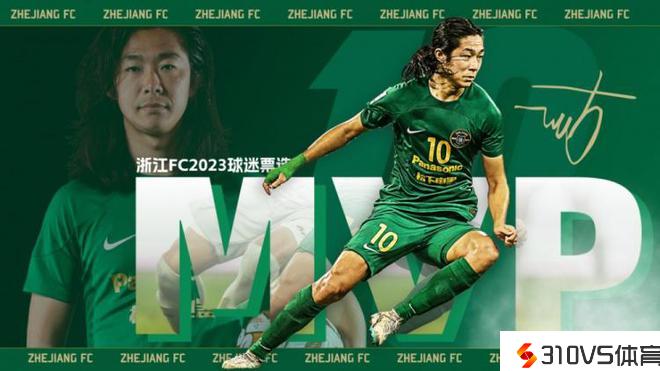 浙江队官方:中场李提香取得球迷票选2023赛季队内最佳球员