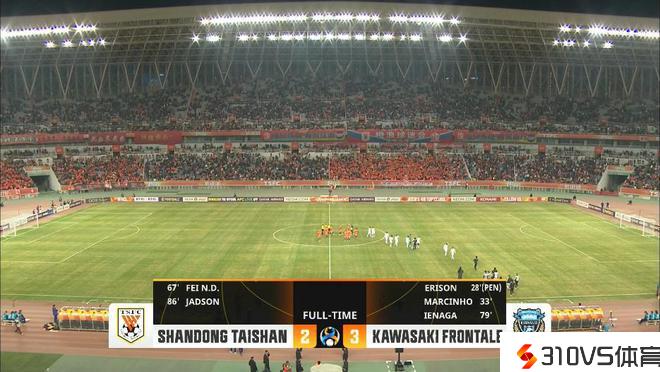 全场竞赛完毕,山东泰山2-3川崎前锋。