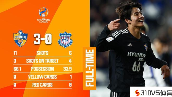 亚冠1/8决赛首回合,蔚山HD3-0击败甲府风林,周敏圭梅开二度