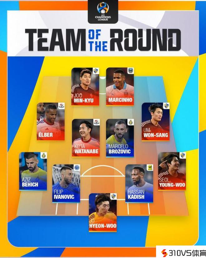 亚冠1/8决赛首回合最佳阵容:布罗佐维奇领衔,蔚山现代4人中选