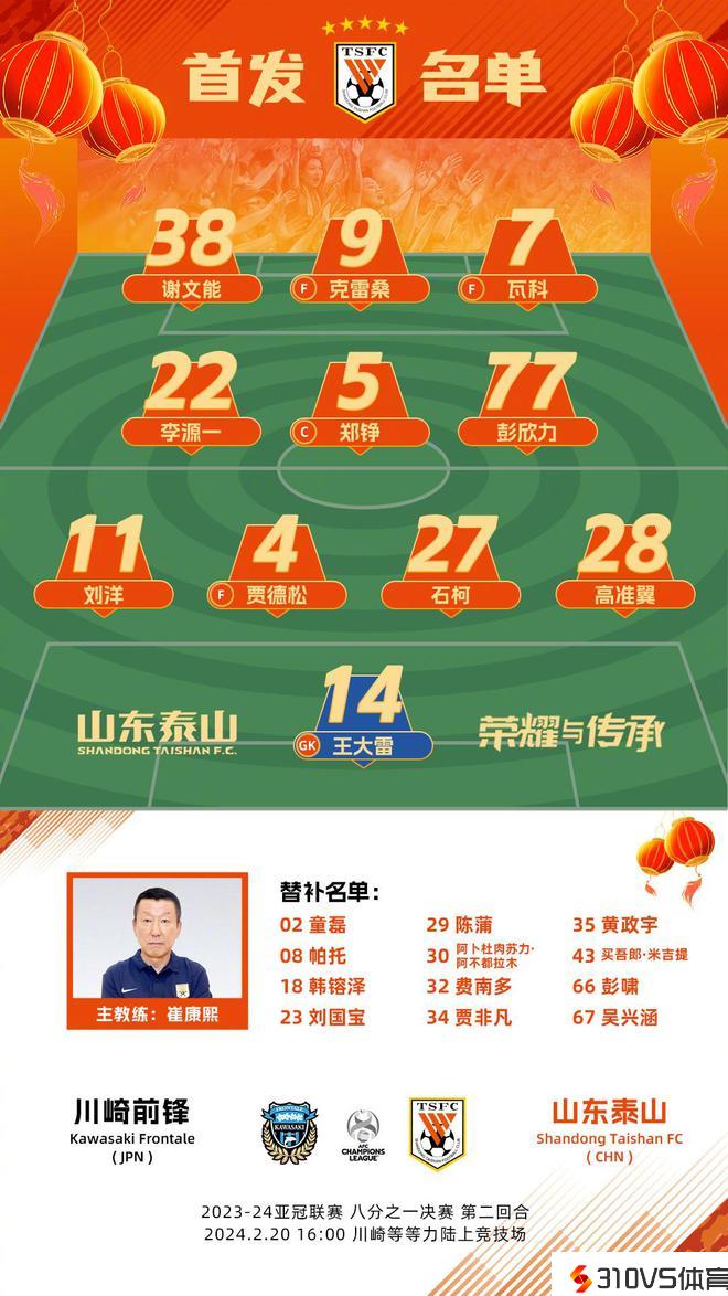 山东队官方亚冠首发:阵型4-3-3,郑铮踢后腰,卡扎左边锋