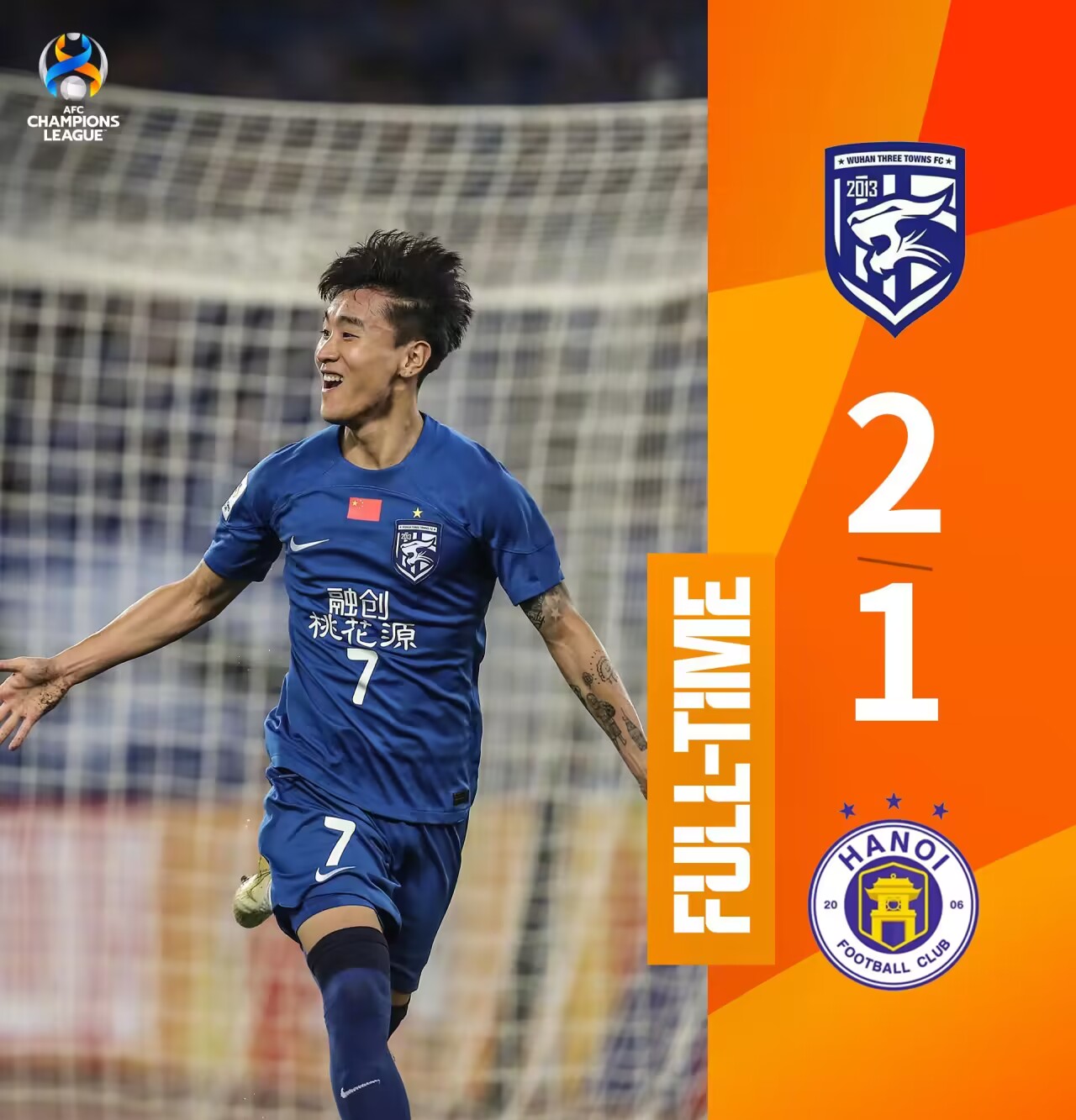 亚冠-武汉三镇2-1九人河内 获队史亚冠首胜 韦世豪马尔康破门