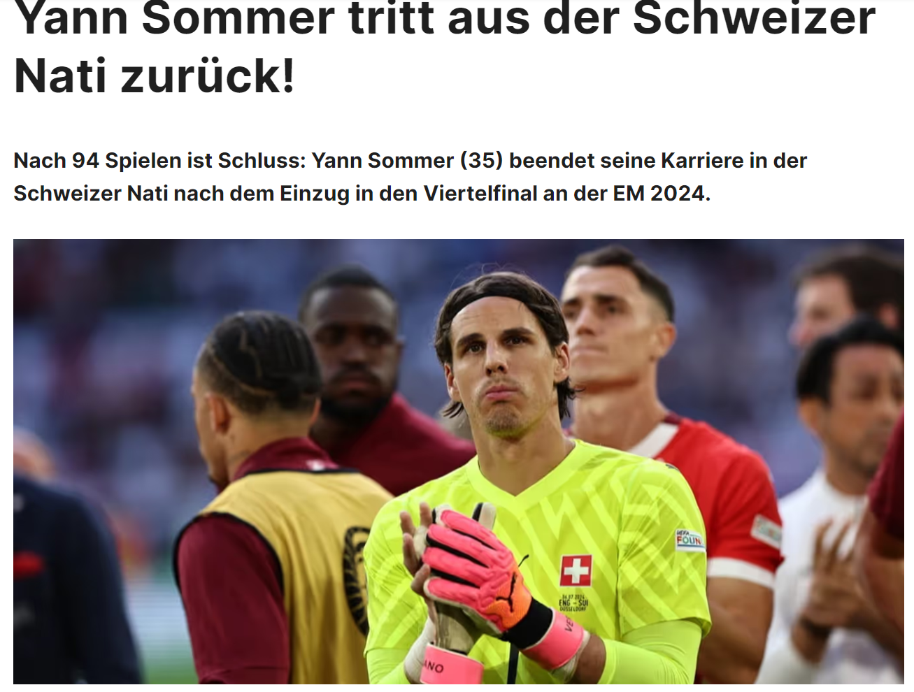 瑞士媒体更是直接宣布:“在为国家队出场94次之后,35岁的瑞士传奇门将的国家队生涯将走向终结”。