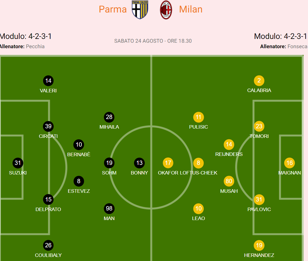 北京时间8月25日0时30分,意甲联赛第二轮,帕尔马将坐镇塔尔迪尼球场,主场对阵AC米兰。