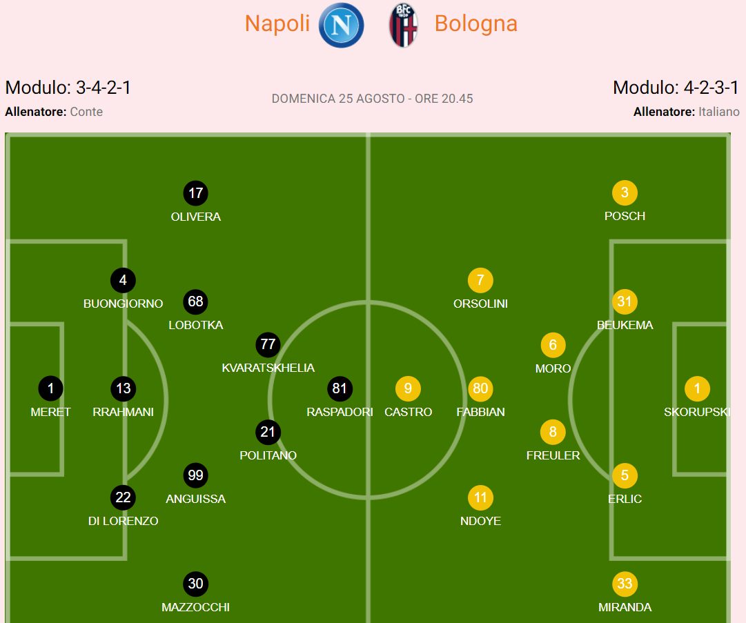 北京时间8月26日2时45分,意甲第二轮,那不勒斯将坐镇主场,对阵上赛季的意甲黑马博洛尼亚队。