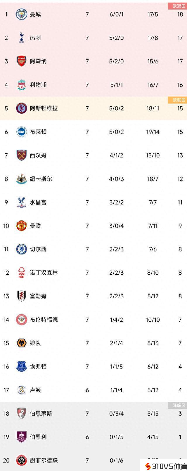 英超 利物浦 切尔西 曼联 阿森纳 托特纳姆热刺 曼城 莱斯特城 纽卡斯尔联 斯托克城 伯明翰 富勒姆 斯旺西 维冈竞技 埃弗顿 南安普顿 狼队 西汉姆联 布莱顿 阿斯顿维拉 诺维奇