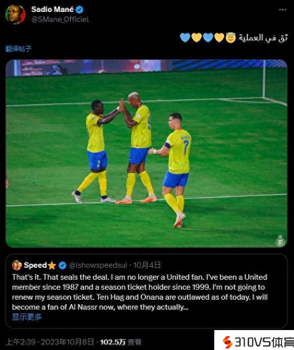 甲亢哥:我不再是曼联球迷,如今支持利雅得成功,马内回复:置信进程