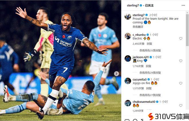 斯特林:为切尔西今晚的表现感到自豪,我们来了