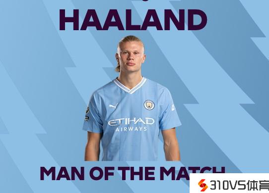 梅开二度,哈兰德中选英超官方+曼城队内全场最佳球员