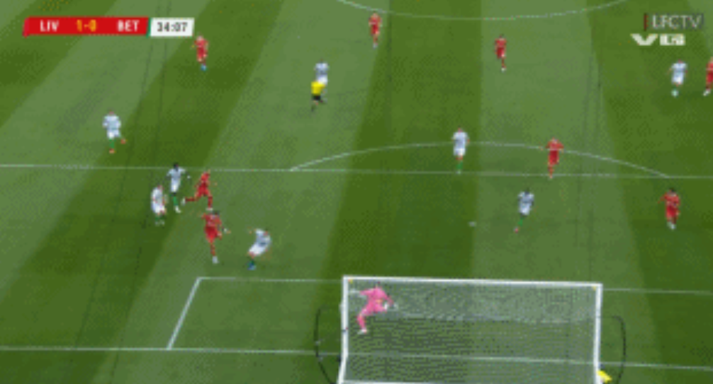 第33分钟,索博斯洛伊低射破门!利物浦1-0领先贝蒂斯。