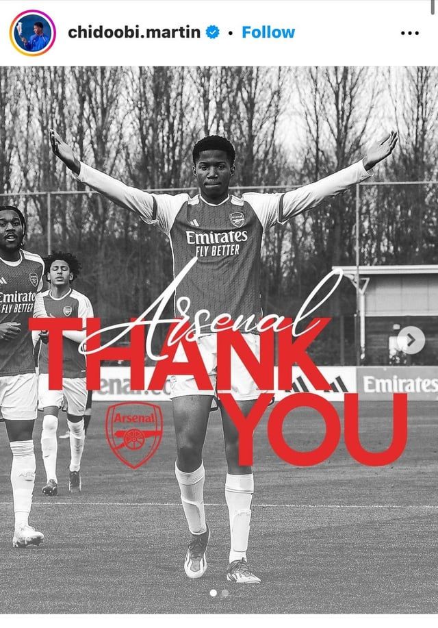 奇多·奥比马丁在个人社交媒体上宣布离开阿森纳。