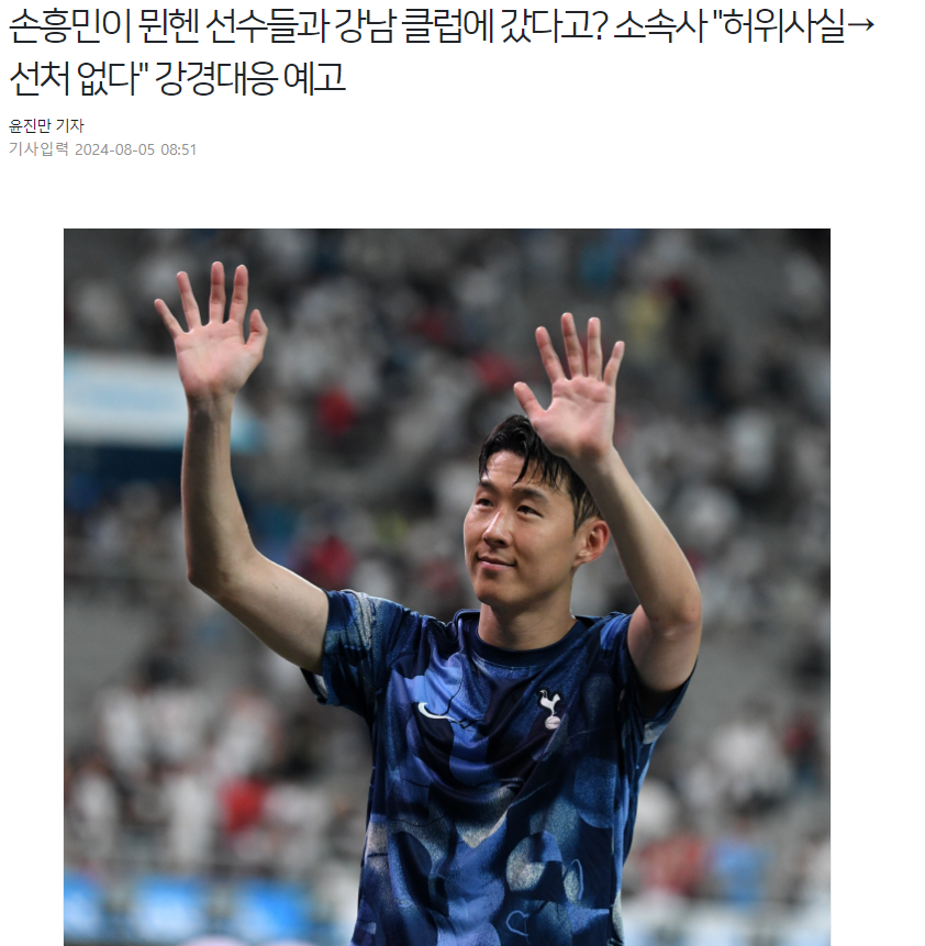 孙兴慜前往娱乐场所? 经纪公司声明:假消息!对造谣者将严惩不贷