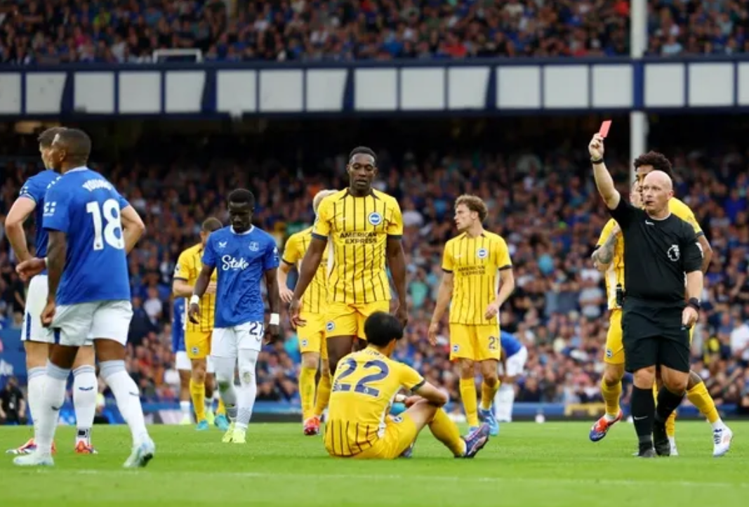 本场比赛,布莱顿三笘薫和维尔贝克先后取得进球。到了第67分钟,阿什利·扬的一次失误导致他不得不对三笘薫犯规,结果被裁判直接出示红牌罚下。这次犯规发生在扬尝试控制一个长传球时,他的停球不够理想,球落在了三笘薫的脚下,为了阻止对方形成单刀机会,扬只能采取犯规动作。