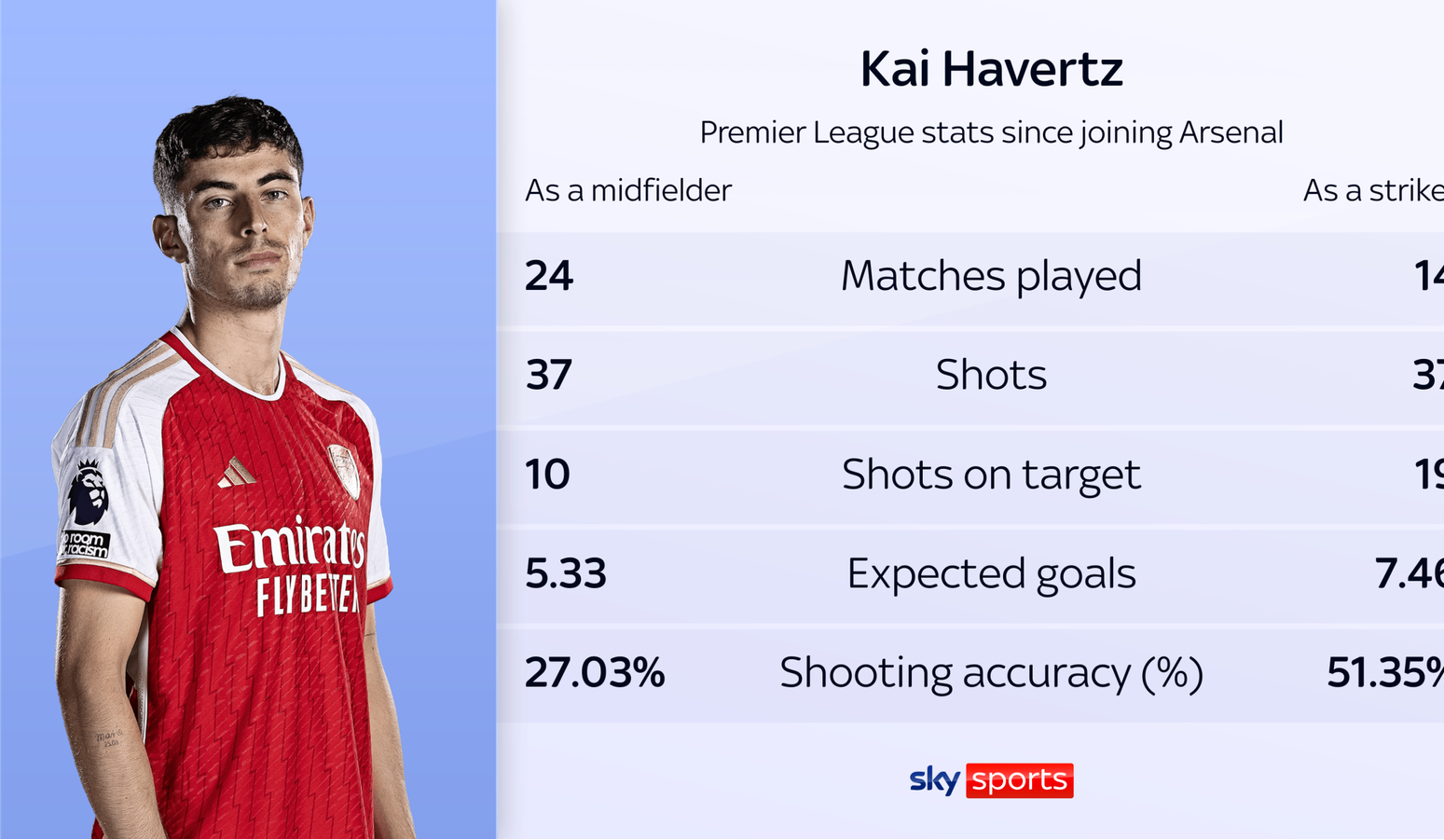 天空体育:哈弗茨14场独造17球 枪手争冠无需引入新前锋