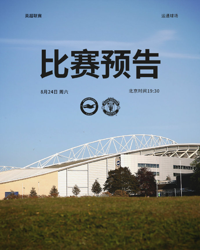 北京时间8月24日19点30,英超第2轮的首场较量中,布莱顿主场迎战曼联。布莱顿赛季主场首秀力争取得2连胜;而曼联则是期待7年后再次以2连胜开局。