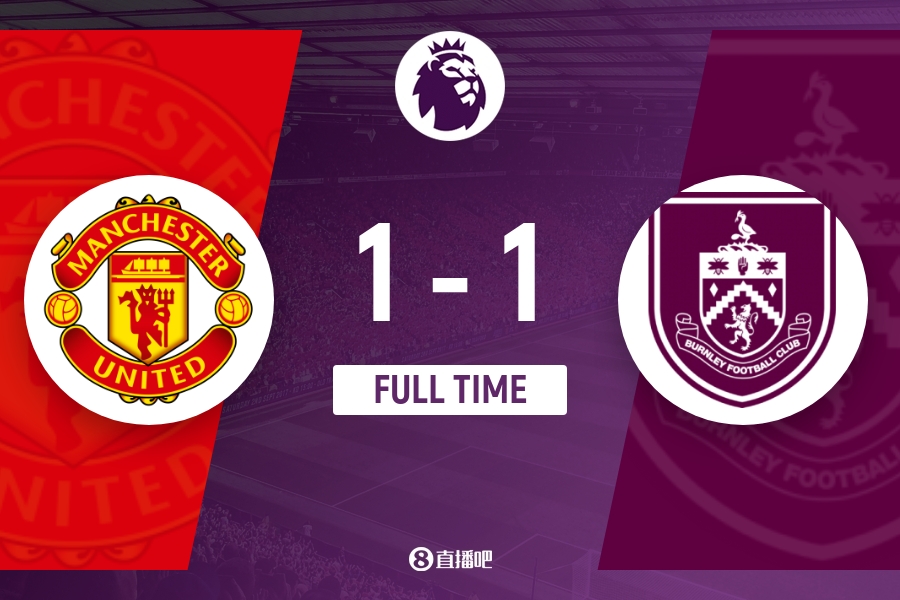 下半场补时6分钟。最终全场比赛结束,曼联1-1伯恩利。
