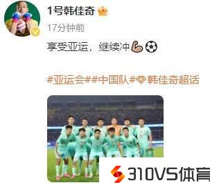 韩佳奇社媒发文庆贺成功:享用亚运,继续冲