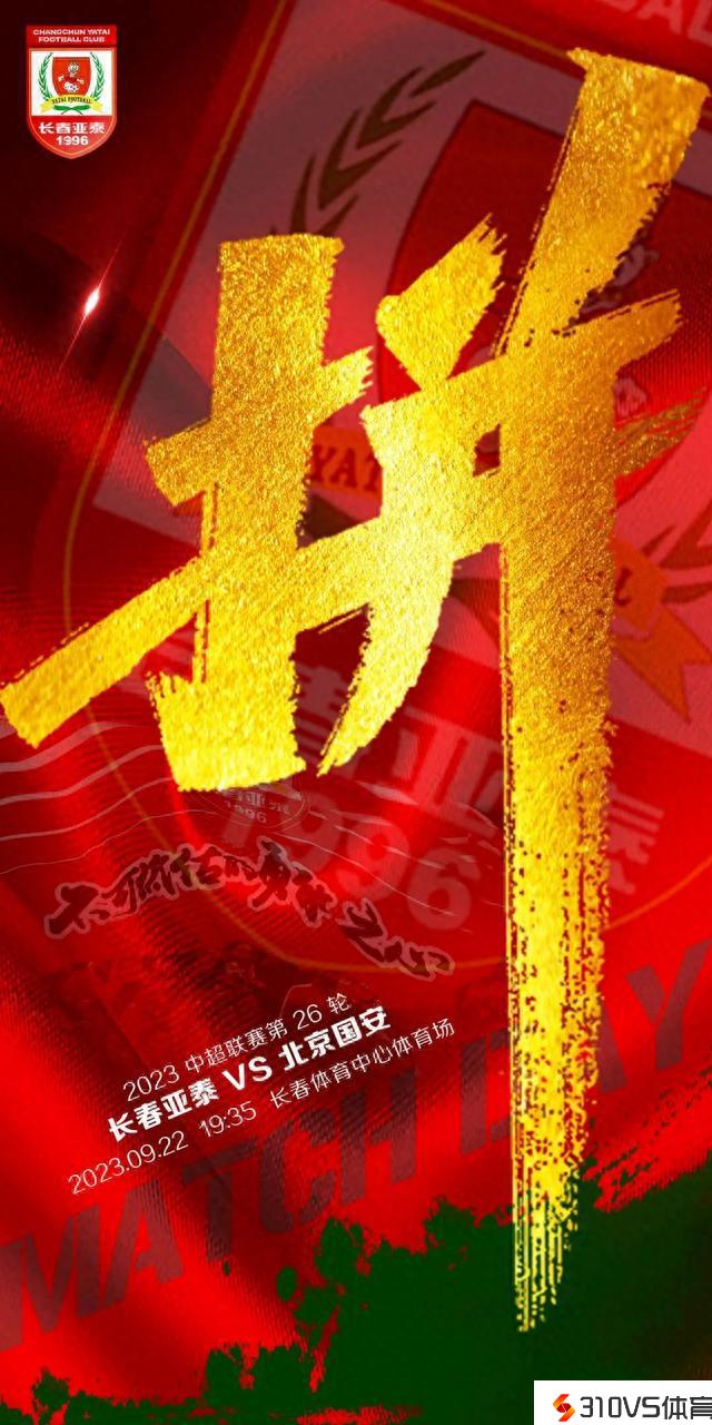 长春亚泰首发:23-吴亚轲、3-毕津浩、19-廖承坚、21-崔麒、24-严智宇、26-弋腾、8-汪晋贤、10-塞尔吉尼奥、20-张宇峰、44-祖伊、13-程长城