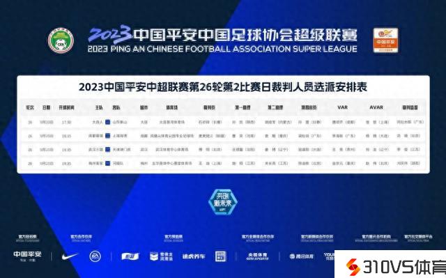 裁判名单:麦麦提江执法蓉城vs海港 傅明执法三镇vs津门虎