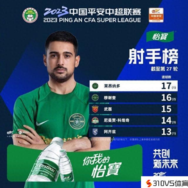 中超射手榜:莱昂纳多17球领跑,武磊15球排名第三