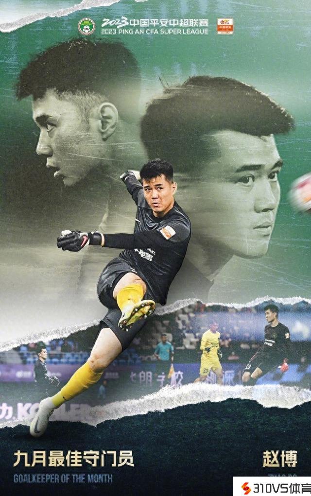 中超官方:浙江队赵博中选9月最佳门将,6次扑救成功率100%零失球