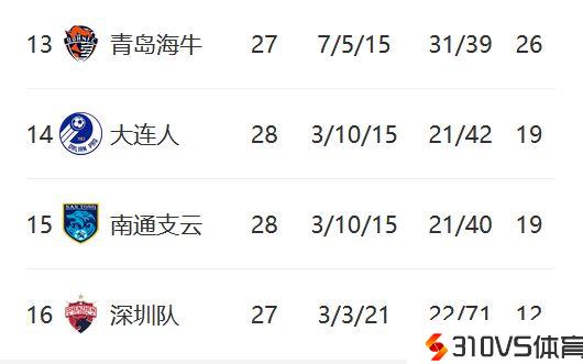 详解中超保级情势:深圳输球就升级!南通支云大连人或末轮定生死