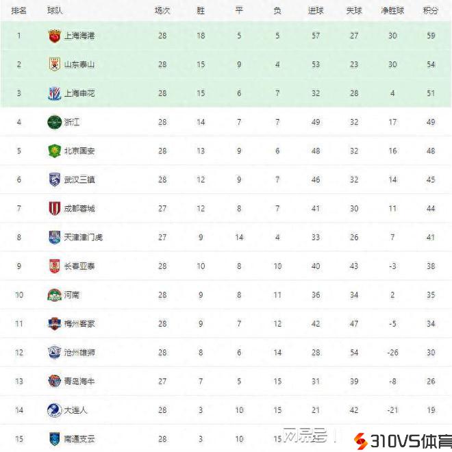 中超最新积分榜:上海申花大胜升至第3,河南6球横扫创历史!
