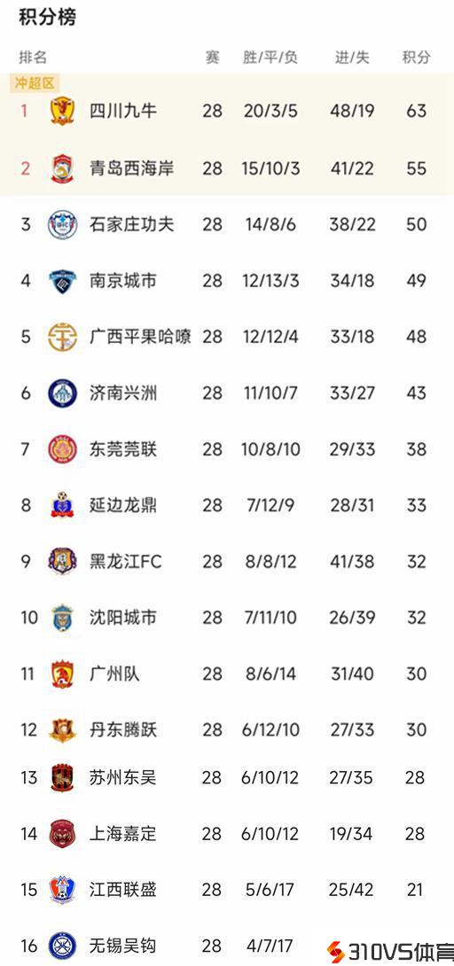 中甲最新积分榜:九牛提早夺冠,青岛最快下轮冲超,广州两连败