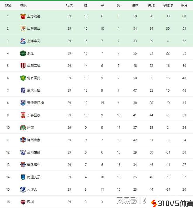 中超最新积分榜:上海海港提早一轮夺冠,大连人战平跌入升级区!