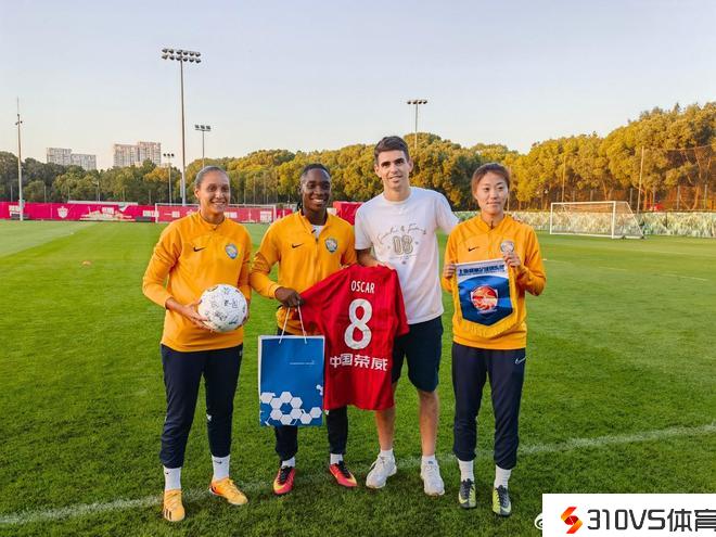 记者:上海女足队员做客海港训练场,与奥斯卡蔡慧康买提江PK