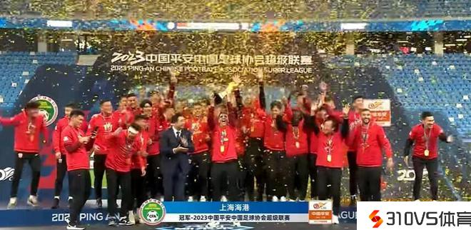 颁奖仪式上,海港球员身穿特制的冠军纪念衫,按顺序走上领奖台戴上了中超冠军的金牌。随后中国足协主席宋凯举着意味中超冠军的火神杯,走到舞台中央,和海港队长奥斯卡共同捧起火神杯。