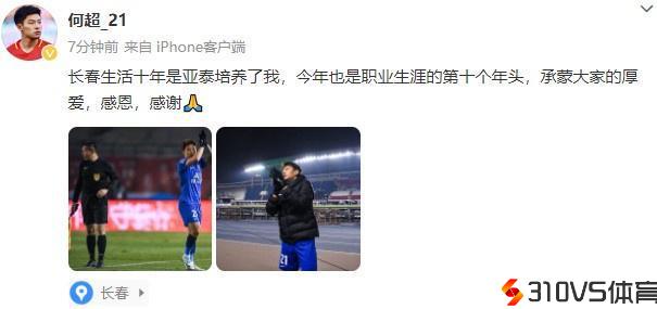 何超社媒发文:是亚泰培育了我,往年也是职业生涯的第十个年头