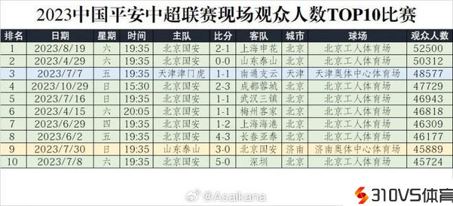 2023中超现场观众TOP10:最高8月19日的京沪德比52500人