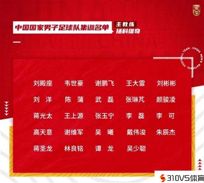 国足发布世预赛集训名单,武汉三镇队三人中选