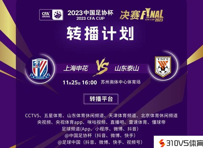昔日!CCTV5等多家平台直播足协杯决赛山东泰山PK申花,冲击9冠王