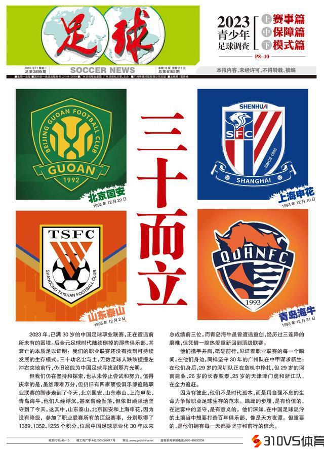 但我们仍在坚持和探求,也从未中止尝试和努力。值得庆幸的是,虽然困难万分,但依旧有四家顶级俱乐部跟随职业联赛的脚步走到了明天,北京国安、山东泰山、上海申花、青岛海牛,他们几经浮沉,甚至曾经坠落,但照旧顽强地据守到了明天。这其中,山东泰山、北京国安和上海申花,由于没有升级,参与了职业联赛一切的顶级赛事,区分取得了1389、1352、1255个积分,位居中国足球职业化30年以来总效果前三位。而青岛海牛虽曾遭遇重创,阅历过三连降的磨练,但仰仗一腔热爱重新回到顶级联赛。