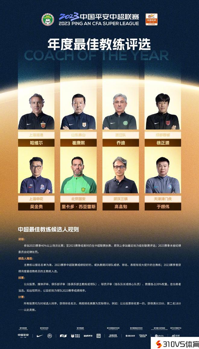 中超年度最佳教练8人候选:崔康熙、哈维尔、徐正源、吴金贵等在列