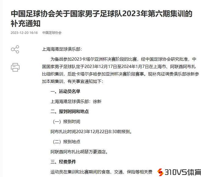 附:国足亚洲杯最新26人集训名单