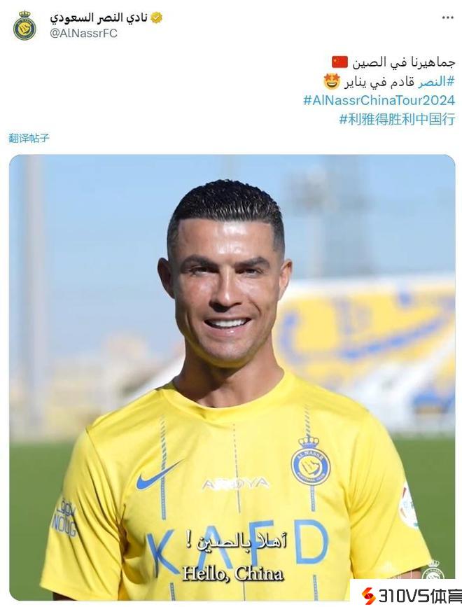 利雅得成功官宣1月过招中超2豪门!C罗第8次访华,浅笑出镜秀中文
