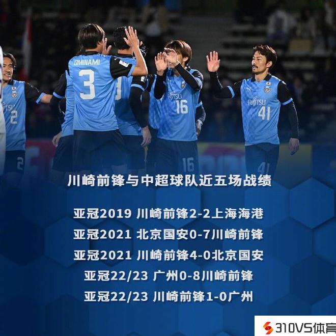 川崎前锋与中超球队在亚冠近五次交手,4胜1平坚持不败