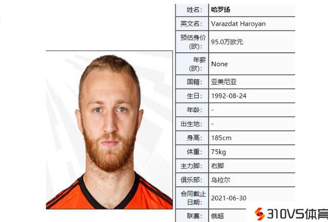 目前西海岸的第四名外援也正式签约,据sportball24报道,亚美尼亚国脚中卫哈罗扬将自在身加盟青岛西海岸。哈罗扬现年31岁,司职中卫,已为亚美尼亚国度队出战79次并打入3球,目前是球队队长。