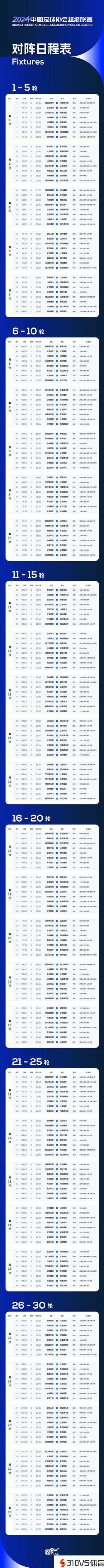 中超新赛季赛程发布:3月1日开幕,11月2日完毕,首轮海港vs三镇