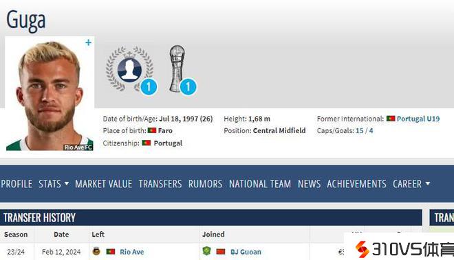 德转:阿维河中场古加转会北京国安,转会费暂未更新