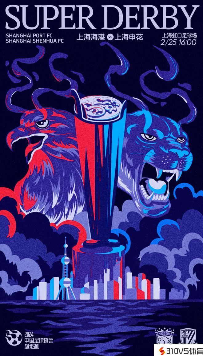 2月25日,中国足协超级杯竞赛将在上海虹口足球场打响,对战双方是上赛季联赛冠军上海海港和上赛季足协杯冠军上海申花。