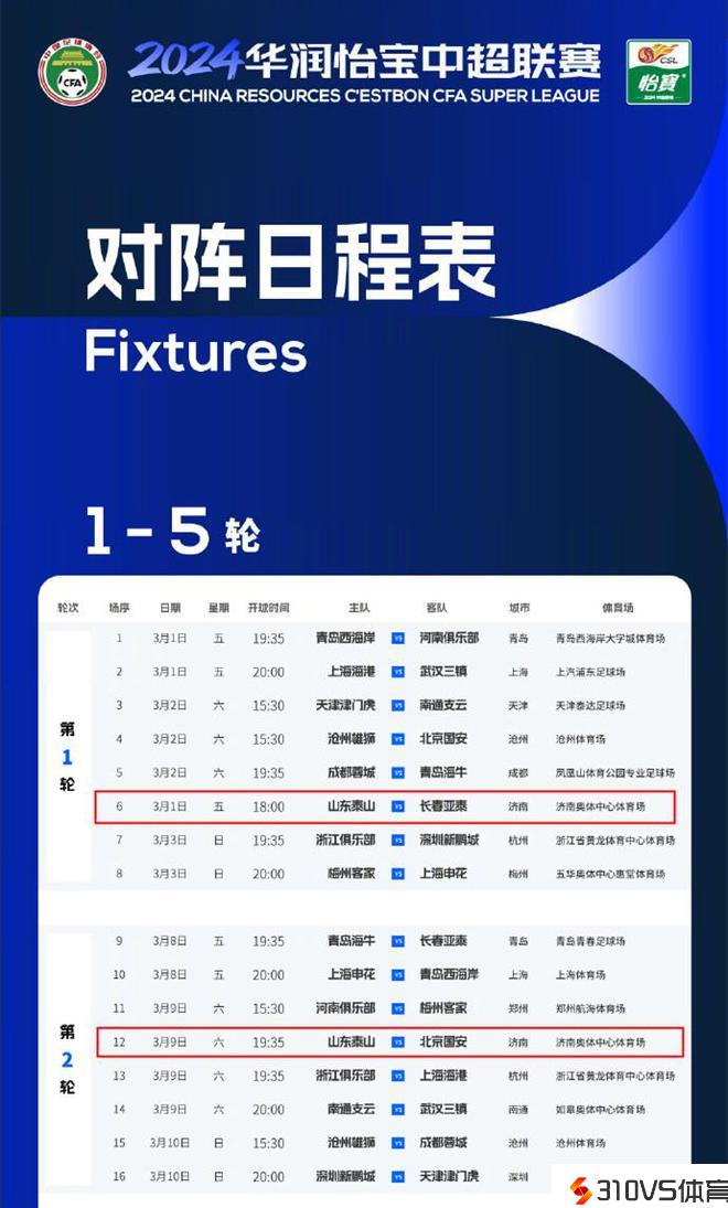 中超官宣!山东泰山赛程调整,3月1日战亚泰,与国安一战不调整