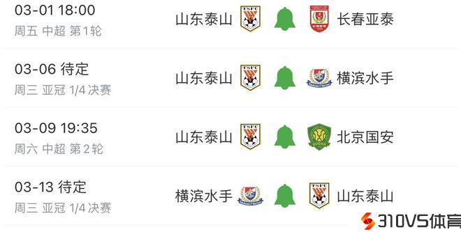 但赛程喜忧参半,与亚泰的竞赛时间更改,3月9日主场对阵北京国安的中超第二轮,没有变化,假设改了,会一同官宣。亚冠主客场,普通客场愈减轻要、面临的难度更大,泰山队在八分之一决赛,则是靠着长时间的休整,才可以在客场完成逆转。需求认清的是,泰山队和横滨水手实力有差距,所以首回合假设结果不利,客场只能放手一搏。