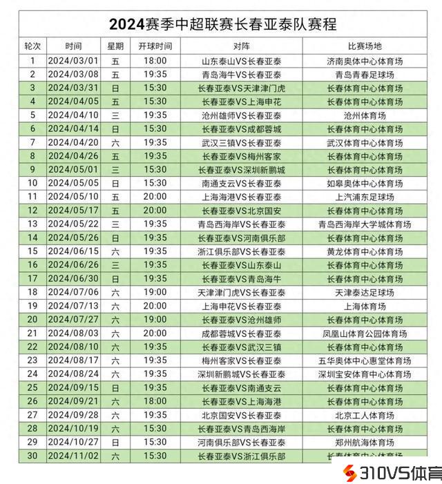 2月25日,中国吉林网从亚泰俱乐部得知,为了配合山东泰山备战亚冠四分之一决赛,长春亚泰赞同山东泰山的央求,将原定3月3日客场与山东泰山停止的2024中超联赛首轮竞赛日期调整至3月1日停止,开球时间也由原定的15时30分调整为18时。
