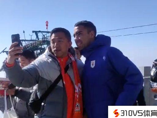 德尔加多在泰山景区与球迷合影。