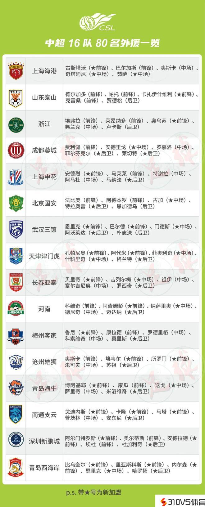 16队全部5外援配置,新赛季中超本周末开幕!